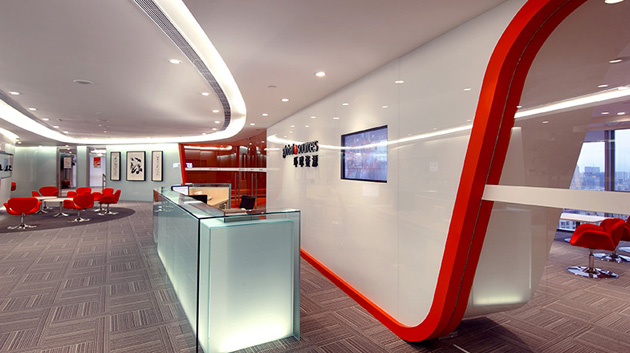 曲线是富有节奏韵律的线,有优美、柔和、灵活和运动变化之感。在过去办公室设计中不论是空间的分割还是桌椅的造型等,大多数以直线的构造出现,四四方方的分割出办公区域,这虽然会给人整齐,和谐统一的视觉效果,但是对于长期在其中工作的人员却会显的呆板、单调,长时间会缺少新鲜感。如果经常在这种办公环境下,员工的积极性肯定会受影响,这时如果在在办公室装修设计中运用曲线,如用带弧度的曲线造型隔断来分隔每个员工的工作区域,就会使整个办公空间充满活力和新颖,给人以流动和轻快的感觉。让人耳目一新。